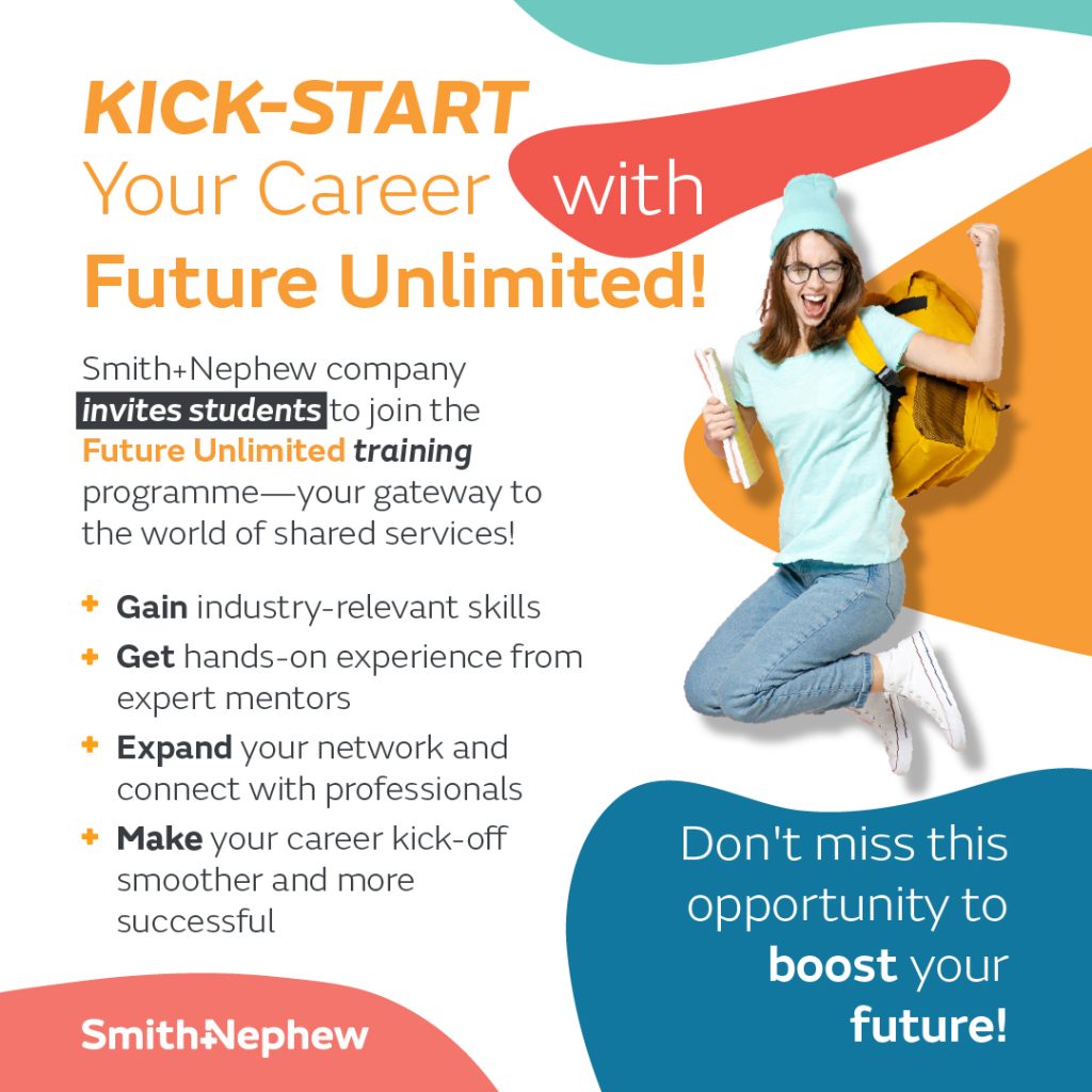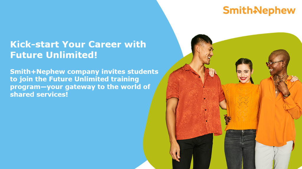 Smith+Nephew company invites students to join the Future Unlimited training programme—your gateway to the world of shared services!